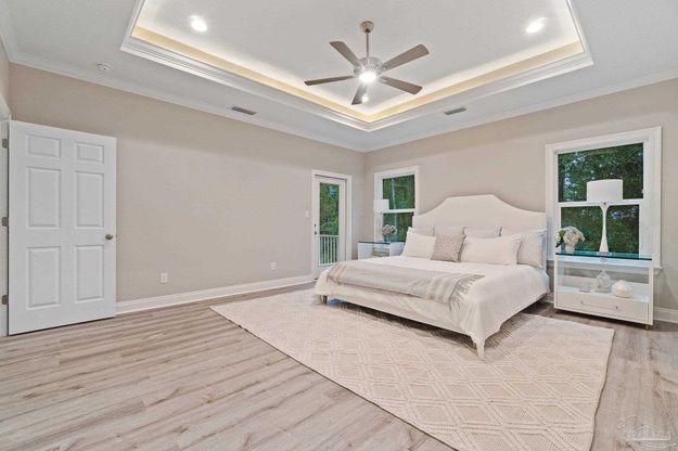 Beautiful new construction home with upgrades galore! This custom craftsman home showcases floor to ceiling windows, tray ceilings in the living room and primary bedroom, sleek white ceiling fans in every room, quartz and marble counter tops throughout, as well as a floor to ceiling tile shower and free standing tub in the primary bathroom. LVP flooring through out - NO carpet! Stainless steel kitchen appliances and pendant lights over the island. A 4th bedroom that could be used as an office and a nice sized laundry room loaded with cabinets. Large french doors add plenty of natural light and lead to the over-sized back patio. The entire lot is sodded and has a sprinkler/irrigation system. Finished attached 2 car garage. Located in the heart of Navarre, close to schools, Publix shopping center and minutes from the beach. This home is a show stopper, don't miss out! *Photos are of a finished home of the same plan but not the exact house*