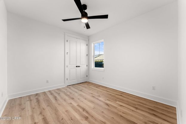 Just completed in 2025, 515 Pine Tree Drive brings fresh coastal living to Panama City Beach with 4 bedrooms, 2 bathrooms, and 1,750 sq ft of thoughtfully designed space, ready for full-time living, a vacation retreat, or a high-performing short-term rental. Step inside and the details speak for themselves: soaring 8' interior doors, wide-plank flooring throughout the open-concept layout, and recessed lighting that keeps every room feeling bright and airy. The living spaces flow naturally together, making it easy to settle in or set up for guests. At the heart of the home, the kitchen is designed to impress, anchored by a generous quartz island and dressed in two-tone cabinetry with white uppers and rich navy lowers. Stainless steel appliances, a modern tile backsplash, and statement pendant lighting round out a space that's as functional as it is stylish. Both bathrooms carry the same elevated finish level, featuring quartz countertops, designer fixtures, and a spa-inspired walk-in shower with frameless glass enclosure. Step outside to a covered patio and a fully privacy-fenced backyard, an ideal setup for outdoor dining or pets. Located in an STR-friendly corridor just minutes from everything that makes Panama City Beach a top destination, this brand-new build offers the rare combination of zero deferred maintenance and true move-in-ready appeal.