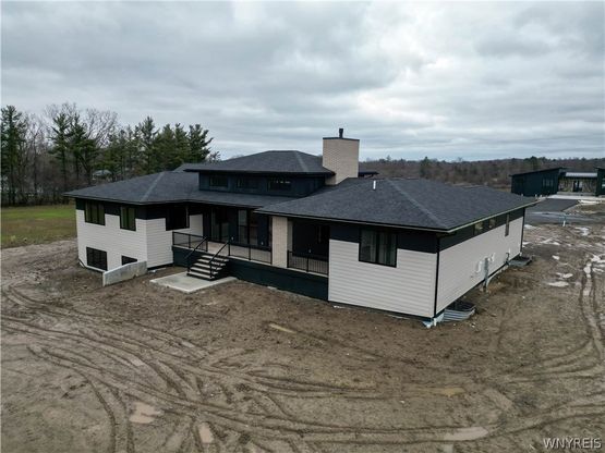 Welcome to 1200 Rice Rd - an exceptional custom-built mid-century modern ranch perfectly situated on 2.3 private acres in the highly desirable Iroquois School District. Designed and built by award winning architects, Crafted Concepts, this stunning and sustainable home offers an unmatched blend of design, thoughtful layout, and cutting edge building science to provide an exceptional living experience. This model, the Cartwright, welcomes you with a grand entry that transports you to the heart of this home, a breathtaking combined kitchen, dining, and living space that is flooded with natural light from the large windows. Anchored by a striking fireplace, this space provides unmatched potential for living and entertaining with a fully custom eat-in kitchen, hidden pantry, breakfast nook, and three sliding doors that access your private rear deck. At the end of the day, retreat to your luxurious primary suite, complete with a large soaking tub, walk-in shower, and custom closet. This main floor also holds the remaining two bedrooms, two additional full baths, generously sized laundry room, and a large bonus room. On the lower level, you will find an additional 450sqft of finished living space with large daylight windows. With 10' ceilings, two egress windows, and a radiant ready slab, you have the unique ability to build-out the unfinished 2,800sqft of the lower level in any way you desire, including additional bedrooms. Anchored by strong horizontal lines, its form gestures outward like a prairie-reaching into the landscape while drawing its surroundings inward, shaping space for life to gather and grow. Rooted in Elma's farmland, The Cartwright reflects a layered sense of belonging-organic in form, open in purpose, and quietly bold in character. Notable upgrades include a full ICF foundation, LP SmartSide Siding, Marvin windows, TimberTech Deck, Dual HVAC systems, Smart Home system, and custom millwork in the kitchen cabinets & island, built in bookcases, and room dividers. Completed in March 2026, this is a rare opportunity to own a beautifully crafted, future-forward home that combines cutting edge performance with timeless design.