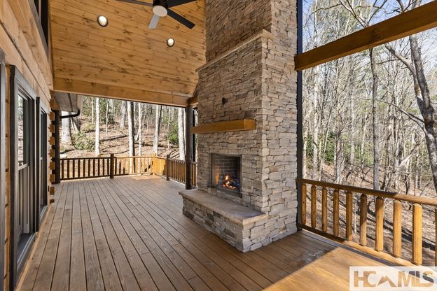 Mountain Chic Redefined - New Construction in Highlands Take a look inside the HIGHLANDS home that is redefining Mountain Chic. This stunning new construction log home blends elevated rustic design with thoughtful modern comfort-perfectly positioned on the Atlanta side of Highlands, making your weekend escape just a little bit shorter. Property Highlights: -3 Bedrooms | 3.5 Bathrooms -Loft Flex Space - Ideal for additional sleeping quarters, a home office, or a serene yoga/zen retreat -Primary Suite on Main Level - A true "Style Statement" designed for sweet dreams and effortless main-level living -Walk-Out Lower Level - Opens to a private patio area and fire-pit, surrounded by nature -Second Living Room - Perfect for guests, media space, or multi-generational living -Direct Access to National Forest - Just steps away for daily walks in a lush, natural landscape The rustic wood flooring is a one-of-a-kind conversation piece-reclaimed from a beautiful old bridge in one of the area's most prestigious country clubs. This rare architectural detail gives the home authentic character and a story you simply won't find anywhere else. Designed for Modern Living The lower level offers two additional bedrooms, 2 full baths, and a spacious second living area-ideal for hosting family and friends. Step outside to your private deck and immerse yourself in the peaceful natural surroundings. Whether you're seeking a full-time residence or a refined weekend retreat, this Highlands home delivers style, comfort, and unmatched mountain charm. Active cameras are present inside and outside the home.