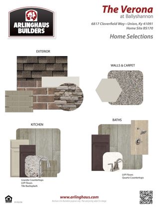 Don't miss this stunning ranch home by Arlinghaus Builders in the highly sought-after Ballyshannon community. The Verona floor plan seamlessly blends style and functionality, showcasing an open-concept layout with soaring cathedral ceilings and durable luxury vinyl plank flooring throughout the main living areas. At the heart of the home is a beautifully appointed designer kitchen, featuring granite countertops, a spacious center island, staggered cabinetry, and ample room for entertaining and everyday living. Enjoy the ease of first-floor living with a convenient laundry room and a luxurious owner's suite designed as a private retreat. The suite includes a double vanity, corner tile shower, and generous linen storage. The finished lower level expands your living space with a large family room and half bath, plus an egress window and rough-in for a future shower--offering excellent potential for customization. Step outside to relax on the covered patio and take in the home's striking curb appeal, highlighted by a brick exterior with stone and siding accents. Additional features include efficient gas heat by Trane and a tankless water heater, delivering both comfort and energy efficiency.