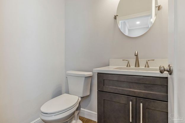 Welcome to this beautifully crafted 2023-built cottage-style home located just minutes from the vibrant heart of Downtown Pensacola! Offering 4 bedrooms, 2.5 bathrooms, and 1,721 square feet, this thoughtfully designed two-story home blends modern finishes with comfortable coastal living. Step inside to an inviting open-concept living, dining, and kitchen area, perfect for both everyday living and entertaining. The kitchen is a standout feature with black shaker cabinets, granite countertops, a large center island, white subway tile backsplash, and modern lighting. Enjoy the convenience of a built-in microwave, electric cooktop and oven, stainless steel dishwasher, and a spacious pantry tucked neatly under the stairs. The primary suite is located on the main floor, featuring luxury vinyl plank flooring, a double vanity with granite countertops, and a tiled walk-in shower with a glass door. A half bath on the main level adds extra convenience for guests. Upstairs, you'll find three additional bedrooms, a full bathroom with matching granite and shaker cabinetry, and a laundry room ideally located for easy access. One of the guest bedrooms offers private balcony access, creating a charming outdoor retreat. Throughout the home, wood-tone luxury vinyl plank flooring provides durability and style. Enjoy outdoor living with a covered front porch perfect for relaxing evenings, as well as an upstairs balcony for added charm and functionality. The property also features a rear parking pad, providing convenient off-street parking. This move-in-ready home offers modern comfort, thoughtful design, and a prime location close to shopping, dining, and entertainment.