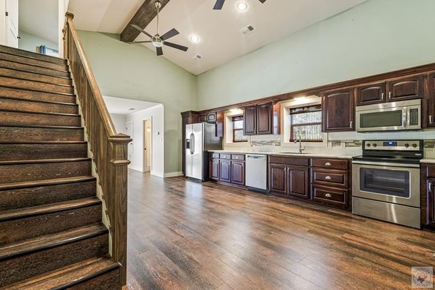 Completely remodeled by Eppinette Construction, this stunning modern home sits on 4.14 acres in Winthrop, AR and offers 2,809 sq ft of thoughtfully designed living space. Featuring 3 bedrooms and 2 full baths, the open-concept floor plan is ideal for both everyday living and entertaining, with a spacious living area highlighted by a gas log fireplace. The kitchen showcases a large quartz island, GE Caf appliances, breakfast/bar seating, and space for formal dining. The split layout provides privacy for the main en-suite, which includes a spa-like bathroom with a soaking tub, oversized walk-in shower, and a generous walk-in closet with a built-in secure room that can serve as a storm shelter or safe. Luxury plank flooring flows throughout the home with ceramic tile in both bathrooms. An oversized garage leads into a well-designed mudroom with ample storage. Enjoy a built-in stereo system that extends throughout the home, garage, and covered back patio, along with the added peace of mind of a whole-home Generac generator. The property also features an impressive 2,000 sq ft shop with an apartment, offering incredible versatility. The shop includes three large roll-up doors, covered parking in both the front and back, and washer/dryer hookup. The apartment features a full electric kitchen, dining area, wood-burning fireplace, full bath, and one bedroom upstairs. With its own private drive, the apartment is perfect for guests, rental income, or Airbnb potential. This one-of-a-kind property offers space, functionality, and modern comfort all in one.