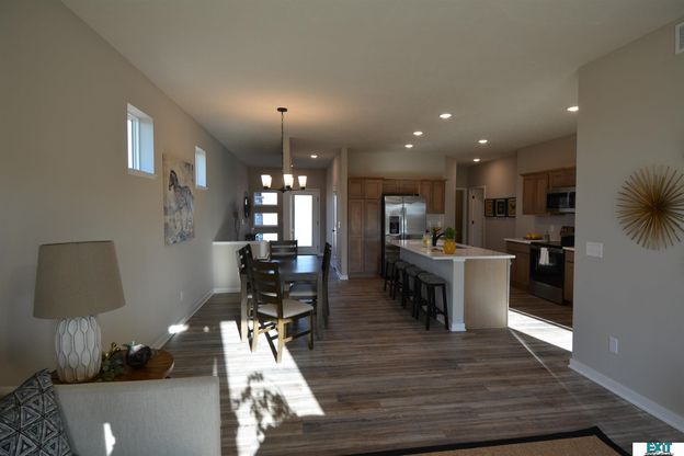 Briarwood Model Townhouse offering 1,273 Sq. Ft. on the main level plus 730 Sq.Ft of finished daylight basement. These 3 bedrooms, 3 baths home, with a 2-car garage features an open concept layout with LVP flooring in the Living room, kitchen, hallway, foyer and bathrooms. The main room includes a walk-in closet, double sinks, and a 4 ft shower with ADA-height stool. The laundry room doubles as a mudroom. The lower level offers a bedroom with walk-in closet and a private office with twin glass doors. Enjoy a 10x10 wood deck off the living room with stairs to the backyard. Backs to common ground and faces mostly west.