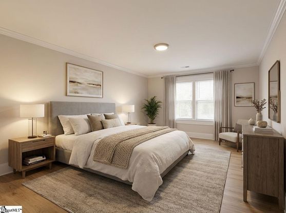 Ready when you are… why wait on new construction when you can move right into a nearly new 2025 home that already has the upgrades dialed in? This home was lightly lived in and thoughtfully finished beyond builder-basic. The kitchen is the natural gathering spot, anchored by a large waterfall island with warm accent cabinetry, quartz countertops, tile backsplash, and sleek quartz tile floors. Neutral tones keep things crisp, with just enough warmth to feel like home—not a showroom. Need flexibility? The main-level bedroom and full bath offer options for guests, a home office, or easy everyday living without the stairs. Upstairs, the primary suite feels like a boutique retreat with a barn door entry, dual sinks, frameless glass shower, private water closet, walk-in closet, and wall-switch-controlled suspended bedside lighting for added convenience. Outdoor spaces include a welcoming covered front porch and a raised rear deck—perfect for relaxing or entertaining. You’ll also appreciate the walk-in laundry room with added shelving, pull-down attic storage, and a driveway with room for up to six cars. Location-wise, this one truly stands out—approximately a 15-minute walk to Fluor Field and an easy stroll into downtown Greenville, with a short walk to the future County Square development bringing dining and shopping close to home. Walkability like this is hard to find. Come see how comfortably this home fits your lifestyle—schedule your showing today.