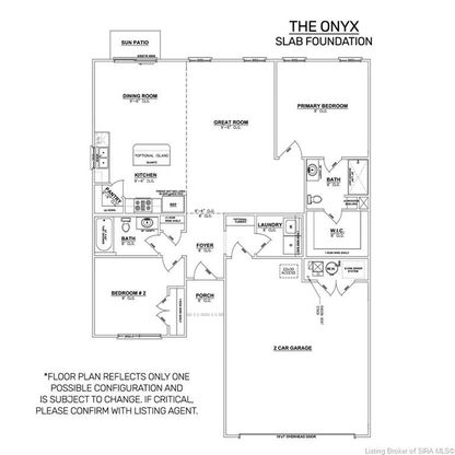 Pictures updated as of 3/26. The Onyx floor plan is a 2 bed / 2 bath home offering the perfect blend of comfort and style! As you walk through the front porch, you'll enter through the foyer, with the 2nd bedroom and guest bathroom located on one side, and the laundry room located on the other. Continuing down the hallway, you'll step into the spacious open-concept great room, kitchen, and dining area. The eat-in kitchen features stainless steel appliances, quartz countertops, a large island, and a walk-in pantry for all your culinary needs. The dining room has a door leading out to the back sun patio, perfect for enjoying the outdoors. The primary suite is located just off the great room and offers a peaceful retreat with a private en-suite bathroom, featuring a walk-in closet and a large walk-in shower. Save $$$ toward closing costs by using one of our recommended lenders! Builder is a licensed real estate agent in the state of Indiana.