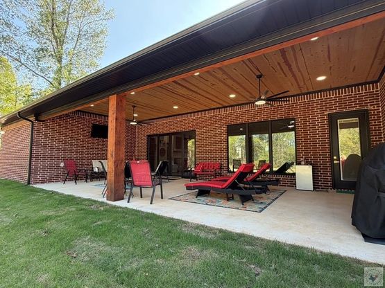 New Construction in Deer Meadow Estates. Very Private, sitting at the end of the cul-de-sac on over 2 acres. As you enter you will see the spacious formal dining area with 12' ceilings. HUGE open living space with a 20+ ft breakfast bar. The bar area has the dishwasher, a double trash can pull out & tons of drawers. The center island has a 6-burner gas cooktop, pull out spice racks & a pull out trash can. All lower storage is drawers with the exception of 1 cabinet & the under sink cabinets. This prevent you from having to get down on the floor to look for things. There are almost 200 cabinets & drawers in this house, so there is no shortage of storage space! There is a walk-in pantry in the kitchen, double oven, microwave & refrigerator. There's also a "Chef's Outdoor Kitchen Closet" located just inside the back door for easy access to your outdoor cooking enthusiast. It is loaded with shelves, great for trays, spices & more. The laundry room has even more storage w/ shelving galore, a broom closet, a sink & space for laundry baskets plus a hanging bar. This split bedroom plan could easily be a 5 bedroom if you make minor changes to the office/front living area. The main suite has 2 super sized walk-in closets, a big walk-in shower, separate vanities, one with a sitting space. On the other end of the house are 3 more bedrooms, one currently being set up as an office/hobby room that has private access to the front by double doors if you needed a private entrance. This would be great for someone that works from home. The jack-n-jill bath enters from the hallway & one of the bedrooms. A half bath that you can access from the hall or from the back yard, in case you see a pool in your future. Out back is a MASSIVE covered patio wired for TV's on both ends, 2 ceiling fans & plenty of light for the outdoor entertainment. Also included for the hobbyist, handy-person is a detached garage/shop. Use you imagination! It is plenty big for whatever you need it for.