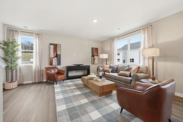 Bell Creek is a new construction community in Staunton, VA. Offering a variety of beautifully crafted homes and a gazebo, common spaces, and paved walkways, Bell Creek is built with modern living and community in mind. The Pine is a stunning open-concept home that perfectly blends comfort and functionality. This home features four spacious bedrooms, two and a half bathrooms, and a two-car garage, offering ample space for your family to grow and thrive. As you enter, you'll be greeted by a welcoming foyer with a convenient powder room and coat closet. The open floor plan allows for seamless flow between the living room, casual dining area, and kitchen, creating the ideal space for family gatherings and entertaining. The spacious kitchen is a highlight, with a large island offering plenty of seating, an impressive corner pantry, and stainless steel appliances. It overlooks the living and dining areas, and a sliding glass door provides easy access to the backyard. Upstairs, the owner's suite offers a private bath with a double bowl vanity and two oversized walk-in closets, creating a luxurious retreat. The three additional bedrooms are generously sized, providing ample privacy, and share access to the second full bathroom.