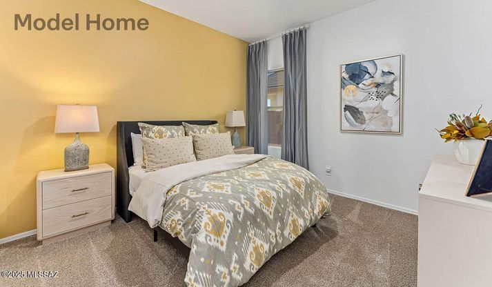 Step into The Kingston at Hanson Ridge in Vail, Arizona, a thoughtfully crafted 2053 sq. ft. single-story new home designed to offer a perfect harmony of comfort and elegance. As you enter through the inviting front porch, you're welcomed into a bright and airy living space that flows seamlessly into the great room, dining area, and kitchen. This open-concept design is perfect for both casual family living and entertaining. The kitchen, with its Quartz countertops, modern appliances, and a convenient pantry, is both stylish and functional, making meal preparation a breeze. The primary suite, located at the rear of the home, provides a private retreat with a spacious bedroom, a large walk-in closet, and an en-suite bathroom featuring dual vanities and a walk-in shower. Under Construction