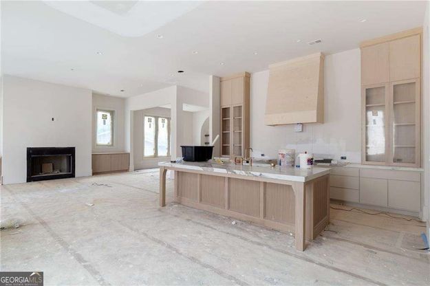 All that you desire-right at your doorstep. Introducing an exceptional new construction home just steps from the vibrant charm of downtown Alpharetta, where luxury living meets walkable convenience. Thoughtfully designed with both elegance and functionality in mind, this stunning residence offers 5 bedrooms, 5.5 bathrooms, a 3-car garage, and approximately 5,700 square feet of beautifully curated living space. A striking arched entry framed by decorative lanterns welcomes you inside to a dramatic two-story foyer that sets the tone for the home's refined architectural details. The main level features trey ceilings, a private study, and an elegant dining room designed for memorable gatherings. At the heart of the home, the chef's kitchen is both sophisticated and functional, featuring a flat bartop island, 48" range with double ovens, catering pantry, and sunlit breakfast area. The kitchen opens seamlessly to the inviting family room with fireplace and custom built-in shelving, creating the perfect space for effortless entertaining and everyday living. The main-level owner's suite is a true retreat, highlighted by vaulted ceilings, a spacious wardrobe-style walk-in closet, and a spa-inspired bath with vaulted ceilings, dual vanities, a soaking tub, and a sleek glassless framed shower. A dedicated laundry room on the main level adds convenience, along with a separate friends' entry leading to a well-appointed mudroom with built-in bench. Upstairs, an expansive entertainment room with vaulted ceilings anchors the second level, accompanied by four additional bedrooms-each with its own private bath and walk-in closet. A second laundry room provides added ease for everyday living. Outdoor living is equally inviting with a covered lounge featuring a fireplace, perfect for year-round relaxation. The spacious backyard offers ample room for a future POOL, with the builder installing an underground retention system that allows buyers the option to add one. Perfectly positioned just moments from downtown Alpharetta, with effortless access to premier shopping and dining as well as Avalon, this home offers a rare opportunity to experience sophisticated new construction in one of North Atlanta's most sought-after locations.