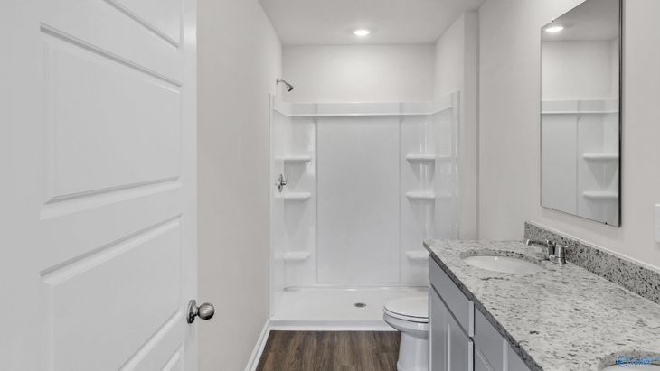 Under Construction-The Aldridge plan is 3-bed, 2-bath single-story home with over 1,200 sq ft and a 2-car garage. The primary suite features a walk-in shower, double vanity, and large closet. The kitchen includes granite or quartz countertops, stainless appliances, a pantry, and breakfast bar, opening to the living and dining area with porch access. The Aldridge includes a Home is Connected smart home technology package - making us America's Smart Home. Photos are for representational purposes.