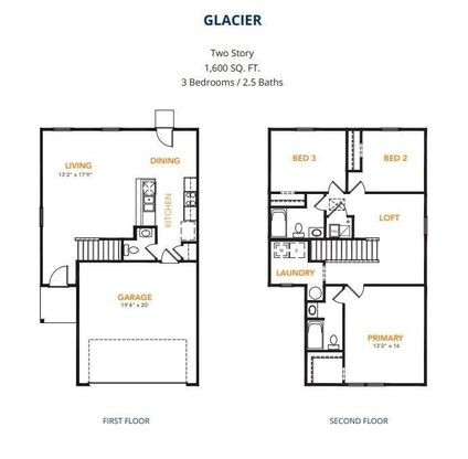 MLS# 21223373 - Built by NHC - Jul 2026 completion! ~ The Glacier Plan from our Freedom Series is a thoughtfully designed 2-story home offering 3 bedrooms, 2.5 bathrooms, and 1,600 square feet of living space, complete with a 2-car garage. As you step inside, you’ll pass the staircase to the upper level before arriving at the bright and open family room. This inviting space flows seamlessly into the kitchen and dining area, creating the perfect setting for family time or entertainment. A convenient half bathroom is located just off the kitchen for easy access. The upper level is designed for relaxation and privacy, featuring a spacious primary suite with a walk-in closet and a private bathroom. Two secondary bedrooms, a full bathroom, and a laundry room complete this level. A large loft provides additional living space, ideal for a playroom, media area, or home office.