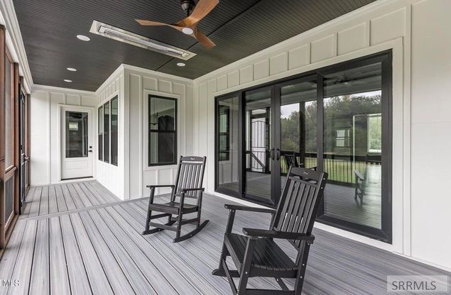 Luxury new construction mountain home on 3.6 creekfront acres in the private gated community of Shadow Ridge. This estate features upper-story Teton views and exquisite craftsmanship, including 8-ft solid wood doors, custom trim, and crown molding and lifetime warranty Mowhawk wood floor throughout the entire home. The grand foyer, dining, and great rooms boast 14-ft ceilings, while the rest of the home offers 10-ft ceilings. The gourmet kitchen is a chef's dream with quartzite counters, ceiling-height cabinetry, and premium appliances. The private master suite is a sanctuary featuring wood beams, tongue-and-groove ceilings, and a spa-like wet room with a freestanding tub, double shower heads, double rain shower heads and a featured tile wall. Three additional bedroom suites ensure guest comfort, while the upstairs vaulted bonus room includes a custom wet bar. Enjoy year-round outdoor living on the screened Trex porch featuring an outdoor fireplace and ceiling-mounted heaters. Completing the home is an insulated 3-car garage with a dedicated mini-split heater to store all your recreation vehicles. Proposed finishes are included in photos and are subject to change.