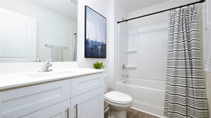 The Cali is a spacious and modern single-story home featured at Waverly Place, located in Linwood, North Carolina, offering 4 bedrooms, 2 bathrooms, 1,764 sq. ft. of living space, and a 2-car garage. Upon entering the home, you'll be greeted by an inviting foyer that leads directly into the heart of the home. This open plan features a living room, dining room, and well-appointed kitchen. The kitchen is equipped with a corner walk-in pantry, stainless steel appliances, and a large island with a breakfast bar, making it perfect for both cooking and casual dining. The Cali also features a large primary bedroom, complete with a spacious walk-in closet, and a primary bathroom with a dual vanity and a separate shower. The additional three bedrooms and secondary bathroom are located at the opposite end of the home. Its covered porch completes the home. The Cali is the perfect place to call home. Contact us today to schedule a personal tour.
