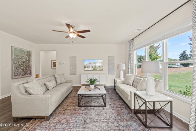 Discover the perfect blend of smart design and everyday comfort in The Everest--a thoughtfully planned home that offers easy main-level living with space to adapt to your lifestyle. Featuring 2-3 bedrooms and 2 full baths, this layout delivers more than expected with an open, light-filled design that feels both welcoming and functional. From the moment you step through the front door, your attention is drawn to the expansive family room, where a stunning wall of windows fills the space with natural light and creates an effortless connection to the open-concept kitchen. Designed for both everyday living and entertaining, the kitchen offers abundant counter space, modern appliances, timeless finishes, and a breakfast nook with sliding glass doors--perfect for enjoying morning coffee indoors or stepping out to the screened patio for fresh coastal air. The private main-level primary suite is tucked just off the family room and serves as a relaxing retreat, complete with a spacious walk-in closet and a well-appointed bath featuring dual sinks, a tiled shower with seat, and elegant finishes. Two additional bedrooms, a full bath, and a conveniently located laundry room provide flexibility for guests, hobbies, or a home office. A bonus room adds even more versatility, ideal for a playroom, media space, or extra storage. With thoughtful upgrades throughout, a screened outdoor living area, and a layout designed for comfort and convenience, The Everest is a home that truly lives well--inviting you to relax, recharge, and enjoy life at your own pace.