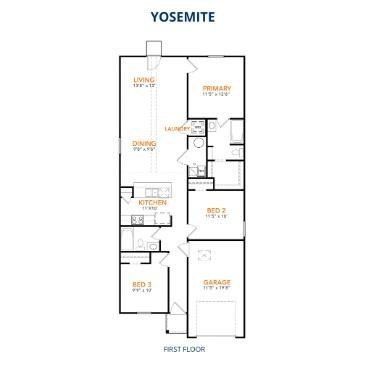 MLS# 21226045 - Built by NHC - Ready Now! ~ Model 1202 B1 - Yosemite The Yosemite Plan from our Freedom Series is a cozy and efficient single-story home featuring 3 bedrooms, 2 bathrooms, a 1-car garage, and 1,202 square feet of smartly designed living space.This split-level floorplan places two secondary bedrooms and a full bathroom at the front of the home, offering privacy and convenience. Continue into the open-concept living area, where the kitchen with a central island overlooks the dining area and family room—perfect for meals, gatherings, and quality family time. The primary suite is thoughtfully positioned off the family room for added privacy and includes a private bathroom and walk-in closet. The laundry room is also conveniently located on this side of the home for easy access.