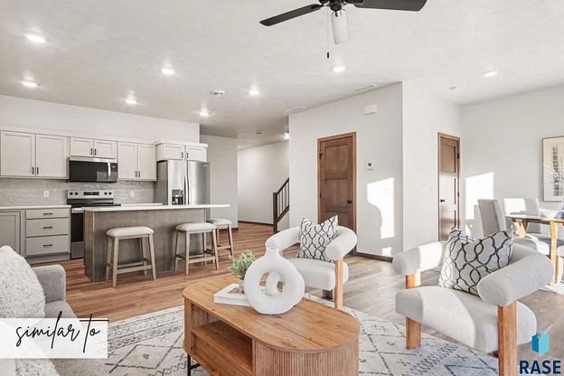 SELLER OFFERING 3% ANYTHING ALLOWANCE on this MOVE IN READY HOME! Enjoy the ease of low-maintenance living in this beautifully designed townhome featuring an open-concept main level with a seamless flow between the kitchen, dining, and living areas-perfect for everyday living and entertaining. The kitchen includes quartz countertops, a convenient walk-in pantry for extra storage. Upstairs, you'll find three spacious bedrooms and a full laundry room, all designed with comfort and functionality in mind. The HOA takes care of lawn care, snow removal, and trash service, so you can spend more time enjoying your home and less time on chores. Schedule your showing today and see all this home has to offer! ......... This home includes custom birch cabinets, solid core poplar doors, luxury vinyl tile floors, 9ft ceilings on the main, tile backsplash. Whirlpool appliance package and landscaping are included. Pictures and finishes are similar Directions: 69th and Graystone S on Graystone W on Bison to Ruby Jean Listing agent is officer/owner of Empire Homes.