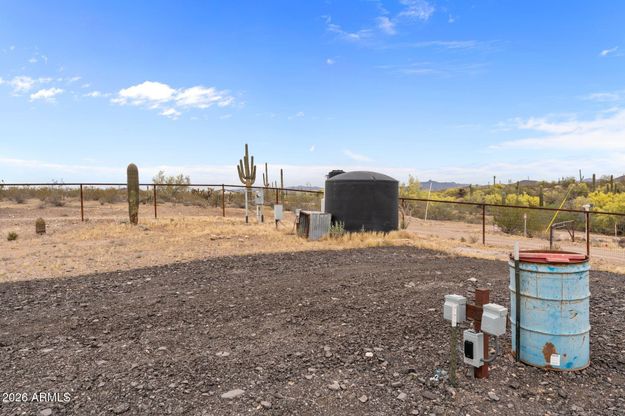 Pristine 2025 two-bedroom, two bath Cavco home on just over an acre. Complete with covered horse pens, three RV Hookups, Perimeter fenced with automatic gate and Saguaro Cactus. Property includes two Connex boxes: 20ft box is used for hay storage and feed room. 40 ft box is used as a work shop, garage and also has a 50AMP plug for your RV or living quarters. Adjacent to the home are two FULL RV hook ups each with 30 amp service. This Sierra Model Cavco home was built with 2x6 walls and comes complete with a new 3 1/2 ton oversized-Air Conditioner. Home was just placed this winter and is in mint condition. Covered Horse Pens have fresh sand and connect to a 180 x 40 turn out. Well Share is 1/4. Easy to finance if you choose.