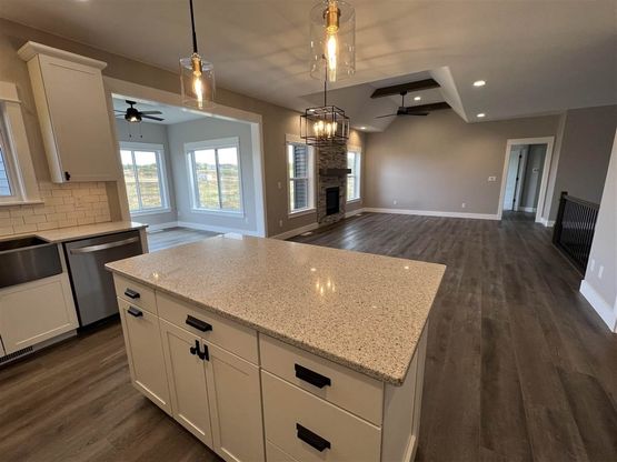PHOTOS OF A SIMIILAR PROPERTY. DESIGN & FINISHES WILL VARY. This spacious floor plan features a four seasons room and a grilling deck with steps down to the back yard. Kitchen has white cabinets with an island, tile backsplash, hard surface counter tops, pantry, and stainless steel appliances with gas range with hood vent. White trim and white doors. Great room with gas fireplace with stone surround. Primary suite has a trey ceiling, walk-in closet and a private bathroom with white cabinets, double sinks, and tiled shower. Built-in drop zone in the mud room. Walkout lower level has a family room with a snack bar with cabinets and sink, bedrooms 4 and 5, and full bathroom.