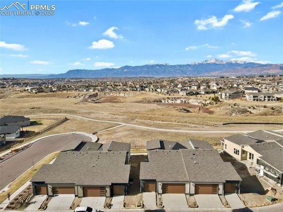 Located in the highly sought-after Wolf Ranch community, this ranch-style new construction home offers unobstructed Pikes Peak views, open space, and a layout that balances design and function. With a west-facing front patio, the home captures mountain sunsets and sits just steps from neighborhood trails and open space. The interior features a cohesive, modern palette with LVP flooring across the main living areas, quartz surfaces, and stainless steel appliances, including refrigerator. The kitchen is anchored by a central island and flows directly to both the dining area and covered patio. The main level includes two bedrooms, with a well-proportioned primary suite featuring a walk-in closet and private bath with dual vanities, quartz countertops, and spacious shower. The finished basement includes a spacious family room, two additional bedrooms, a 3/4 bathroom, and a large unfinished storage or flex space. A true 3-car garage offers flexibility for parking, storage, or hobby space, with a layout that connects efficiently to the home. Wolf Ranch is known for its established amenities, including a private lake, recreation center with pool and splash park, parks, and an extensive trail system. The combination of location, views, and finishes creates a well-positioned opportunity within a thoughtfully planned community with a variety of amenities.