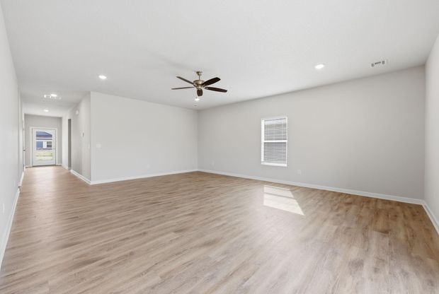 Welcome to the Cleveland floor plan by Liberty Communities! This stunning one-story layout boasts 1701 square feet, and features four bedrooms and two bathrooms, thoughtfully designed to fit your lifestyle. At the center of the home, the kitchen stands out with sleek granite countertops, a large walk-in pantry, and a full suite of appliances-including a stove/oven, microwave, refrigerator, and dishwasher-making everyday living and entertaining effortless. Durable luxury vinyl plank (LVP) flooring flows through the main living areas, while window blinds throughout add privacy. Step outside to a concrete patio, perfect for relaxing or hosting gatherings, and enjoy the added benefit of an oversized two-car garage complete with a FEMA-approved storm shelter for extra peace of mind. This home truly is move-in ready, with all major appliances included-washer and dryer, too. Built with quality in mind, it also features durable James Hardie concrete siding and a high-efficiency HVAC system for long-term comfort and reliability. Don't miss your opportunity to own this beautifully finished home-contact us today to learn more and schedule your private tour!