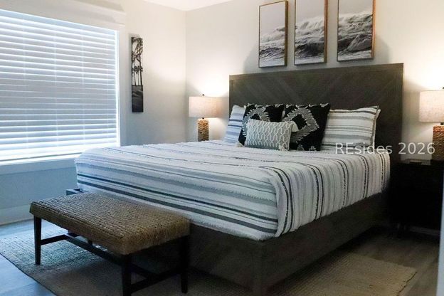 Built in 2022 and offered fully furnished, this beautifully maintained Hilton Head Island townhome is tucked just off Spanish Wells Road in a quiet, charming Lowcountry setting-only ~3 miles to the beach With 3 levels of spacious living, this home offers 4 bedrooms, 3.5 bathrooms, and 2,079 sq. ft.-including two primary suites, making it ideal for guests, multi-generational living, or flexible use. Inside, you'll love the coastal beachy-boho vibe paired with modern finishes throughout. Features include LVP flooring throughout ALL floors (no carpet!), smooth high ceilings, recessed lighting, and stylish wainscoting in the main living areas. The kitchen is both functional and beautiful with quartz countertops, soft-close shaker cabinetry, stainless steel appliances, and ample pantry/storage space-perfect for everyday living or entertaining. The primary suite is a true retreat featuring a tray ceiling, LARGE walk-in closet, and a bonus flex area-perfect for a nursery, workout space, home office, sitting room, or dressing area. The ensuite bath includes a spacious walk-in shower. The second primary suite and additional bedrooms offer flexibility for guests, work-from-home needs, or hobbies. Enjoy Lowcountry living on the custom screened-in patio featuring low-maintenance, year-round turf-ideal for outdoor living, entertaining, or relaxing while enjoying private wooded views Additional highlights include a one-car garage, wide driveway, and golf cart-friendly location. Conveniently located near local dining, shopping, and everyday essentials-with quick access to the Cross Island Bridge, Bluffton, Marshland Road, Broad Creek, and all the best of Hilton Head Island. Like-new construction meets relaxed coastal living-perfect as a primary residence, second home, or investment property.