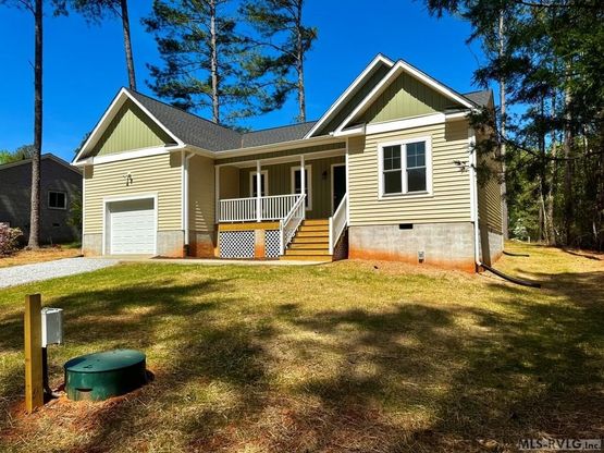 Welcome to 123 Hemlock Dr., a brand-new home nestled in the heart of the highly sought-after Tanglewood Shores subdivision in Lake Gaston's desirable Northwest Quadrant. Offering the ease of one-level living, this thoughtfully designed 3-bedroom, 2-bath home spans 1,400 square feet and showcases modern finishes throughout. Step inside to find luxury vinyl plank flooring throughout and a stylish kitchen featuring soft-close cabinetry, quartz countertops, and an open layout perfect for entertaining. Enjoy peaceful mornings on your covered front porch with durable composite decking, or unwind on the rear covered deck with views of the 4th fairway of Tanglewood's golf course — an ideal backdrop for relaxing or grilling out. The large backyard provides ample space for outdoor enjoyment, and the community itself offers some of the best amenities around Lake Gaston. Residents have access to a private boat ramp, waterfront park with sandy beach, playground, and day-use boat slips. While golf and pool memberships are optional, they're readily available for those looking to fully enjoy the active Tanglewood lifestyle. Whether you're seeking a weekend escape, full-time residence, or investment opportunity, 123 Hemlock Drive offers a rare blend of quality construction, location, and value. Don't miss your chance to call this Lake Gaston gem home. Contact myself or my team today to schedule your private tour!