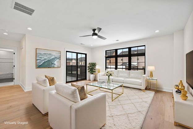 Incentive: Builder will install matching wood flooring in the upstairs bedrooms if under contract by 4/30/26. Luxury townhome weeks from completion in 40513. Conveniently located near Palomar with walkable access to restaurants and coffee shops - offers both convenience and sophisticated design. The main level boasts soaring (upgraded) 10-foot ceilings and elegant 8-foot doors. The first-floor primary suite includes a spacious walk-in closet, two separate vanities, a beautifully tiled marble shower, and freestanding tub and a large walk-in closet + linen closet. The chef's kitchen features gorgeous stone countertops, designer cabinetry, Cafe appliances (including a gas range). A gas fireplace with stylish gas balls anchors the living room, complemented by a dining area, powder room, and laundry. Off the dining room, a covered patio with stamped concrete (electric ran for tv) creates the perfect outdoor living space. Upstairs, enjoy a generous loft, plus two additional bedrooms (carpet) each with a walk-in closet. Two full bathrooms, providing privacy and comfort for family or guests. A rear-entry attached garage completes this thoughtfully designed home. This unit features a roof top patio. Additional upgrades include gas tankless water heater and dual fuel Hvac. Broker/Owner