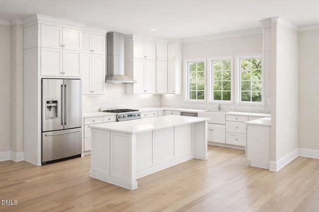 Experience refined living in this exceptional custom home set on 2.5 private, wooded acres near Jordan Lake, Seaforth High and the Triangle corridor. Designed with sophistication and a sense of serenity, this 3,688 heated square foot residence (5,025 under roof) offers a rare blend of architectural elegance and natural beauty. The main level showcases a luxurious primary suite retreat and a private guest suite. Every bedroom features its own ensuite bath for comfort and privacy. Thoughtfully designed living spaces offer a seamless balance of grand-scale entertaining and intimate everyday living. At the heart of the home, a designer chef's kitchen features an expansive island, custom cabinetry, and a generous walk-in pantry. Appliances include Cafetm 34'' smart dual fuel commercial style 6 burner range, 36'' designer wall mount hood, custom fit Energy Star stainless interior Smart dishwasher with ultra wash top rack and dual convection ultra dry. Space flows effortlessly to a stunning vaulted screened porch and outdoor dining area, creating a true indoor-outdoor lifestyle setting immersed in nature. Set within an exclusive enclave of custom homes, this property offers the advantage of no HOA, with minimal covenants, preserving both freedom and architectural integrity. The expansive homesite provides ample opportunity for a future pool, outdoor living retreat, or future boathouse. Photos reflect current construction progress and the craftsmanship of completed residences by this builder.