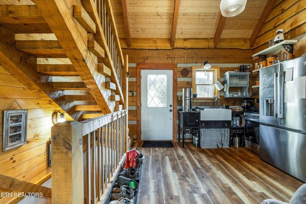A rare opportunity to own a true East Tennessee legacy estate--over 80 acres of thoughtfully improved land where luxury living and self-sufficient homesteading come together in perfect balance. This one-of-a-kind property offers unmatched versatility, natural beauty, and craftsmanship that is nearly impossible to replicate. At the heart of the estate sits a ~1,600 sq ft custom main cabin, where every detail reflects intentional design and timeless quality. Hand-hewn wood elements are showcased throughout, with each piece carefully crafted and touched by hand, creating a warm and authentic atmosphere. Built using materials sourced in the USA, the home blends rustic character with modern comfort. The main level offers inviting living spaces and a spacious sunroom with floor-to-ceiling windows that frame breathtaking views of the Cumberland Gap. Upstairs, the private primary suite offers a peaceful escape with its own ensuite bath. The finished lower level is designed for both entertaining and flexibility, complete with a full wet bar, guest bedroom, and a spacious area ideal for hosting or extended stays. Step outside to an expansive patio and unwind in your private wellness retreat, featuring a 6-person Caldera spa, hot springs-style hot tub, and cold plunge--perfect for year-round relaxation. In addition to the main residence, a ~600 sq ft guest cabin provides incredible opportunity for multi-generational living, private guest accommodations, or potential short-term rental use, with furnishings negotiable for a turnkey experience. The property continues to impress with multiple additional buildings, offering flexible space for storage, classroom or workshop use, creative studios, or future living quarters. Beyond a private estate, the scale, layout, and natural beauty of the land present a rare opportunity for a boutique event venue, private retreat, or destination-style gathering space. With expansive open areas, scenic backdrops, and multiple structures for hosting and accommodations, the property is well-suited for weddings, events, or curated guest experiences. Step outside and experience the true essence of homesteading. The land is rich with established fruit and nut trees, including fig, elderberry, cherry, almond, plum, nectarine, peach, persimmon, apple, pear, and pawpaw. Berry patches of blueberries, raspberries, and blackberries thrive alongside muscadine and Concord grapevines. Established garden areas and a traditional root cellar support a sustainable lifestyle. Water resources are abundant, with two wells and a natural spring on the property. Scenic waterfalls and mature trees enhance the landscape, creating a peaceful, private setting filled with natural beauty and abundant wildlife. For recreation and functionality, the estate includes a private on-site range, making it ideal for training, hobby use, or unique business opportunities. A barn and additional storage structures further support agricultural, recreational, or operational needs. An abundance of native wildlife roams the property, offering a true connection to nature--frequent sightings of deer, turkey, and a vibrant variety of birds create a private, ever-changing landscape filled with natural beauty and sound. Whether you envision a private family retreat, working homestead, income-producing property, or a multi-use estate with event or short-term rental potential, the possibilities here are truly expansive. Properties of this scale, quality, and versatility are rarely available. This is more than a home--it's a legacy property designed to be lived in, shared, and passed down for generations. Extensive feature list available--details beyond what MLS can capture.