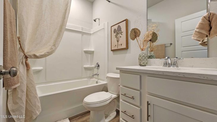 Introducing 14463 Majesta Drive in Gulfport, Mississippi, one of our new homes in Swan Landing. At over 3,100 square feet, the McKenzie boasts 5-bedrooms, 3-bathrooms, a study and 2-car side entry garage. Entering the home from the front porch, you are greeted with a study and formal dining room. Further inside, there are two bedrooms that share a full bathroom. The great room offers an open design with a kitchen featuring an island and shaker-style cabinetry, quartz countertops and stainless-steel appliances and a breakfast area that leads to a covered porch. Just off the kitchen, you will find a walk-in pantry and separate laundry room. Nestled behind the breakfast area, are two bedrooms that share a full bathroom with a shower/tub combination. The primary bedroom has separate access to the back covered porch and an ensuite that features a linen closet, double vanity, tiled shower, garden tub, large walk-in closet and a separate water closet. The McKenzie includes a Home is Connected smart home technology package which allows you to control your home with your smart device while near or away. This home is also being built to FORTIFIED Gold HomeTM certification. Pictures, photographs, colors, features, and sizes are for illustration purposes only and will vary from the homes as built. Images are of model home and may include custom design features not available in other homes. Furnishings and decorative items are not included with home purchase. Some images may be virtually staged or have topography enhanced. Landscaping may be a decorator item not included in the purchase price and may not be available.