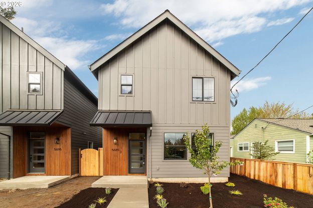 Welcome to an exceptional brand-new home where modern sophistication meets neighborhood charm. This beautifully crafted home features a primary bedroom with vaulted ceilings and ensuite bath. The second bedroom has an adjacent bath of its own. The open-concept main floor with tall ceilings maximizes space and light, while the kitchen showcases premium quartz countertops and stainless-steel appliances. This home includes a rear patio and has access to an expansive field-turf common area that is shared, but also fenced for safe activity and play, a perfect outdoor area for yard games or entertaining on a surface built for year-round enjoyment. Nestled on a peaceful street near historic Woodstock, you'll enjoy the perfect blend of tranquil living with urban accessibility - just moments from local shops, cafes, parks, and schools. Don't miss the uber popular food court "The Heist" and New Seasons grocery. This is a rare opportunity to experience comfort, style, and community all in one exceptional location. For availability, pricing, plans and more, visit the WoodstockHaven dot com website.