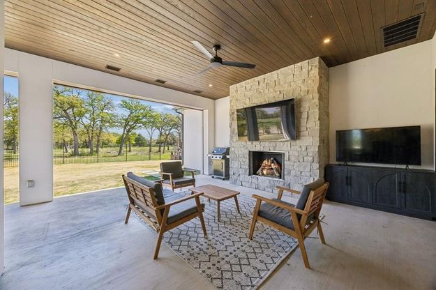 Step into this bespoke showpiece by V Patrick Gray Homes, nestled on a corner lot in the back of the new Ferguson subdivision and zoned to the award-winning Carroll ISD. Designed with a perfect blend of elegance, comfort, and livability, this transitional gem offers a seamless balance of luxury and practicality. Spanning 4,213 sq ft with 4 bedrooms - 2 conveniently located first-floor - 4.1 baths and 2 Car Garage, this home is a true standout. From the moment you enter, the rich hardwood floors and warm wood accents guide you through a space where every detail has been thoughtfully curated. At the heart of the home lies a chef’s kitchen outfitted with top-of-the-line Thermador appliances, custom cabinetry, and a spacious walk-in pantry—tailor-made for effortless entertaining. The inviting open-concept living area is anchored by a stunning designer fireplace, creating a cozy yet sophisticated ambiance. Whether hosting a gathering or enjoying everyday moments, this home has spaces designed for every occasion. In addition to spacious game room up are 2 beds with ensuite baths and a dedicated media room - perfect for movie nights or game-day celebrations. Step outside to discover a covered patio, gas fireplace, phantom screens and view of expansive greenbelt and fountain—ideal for al fresco dining with a view. The energy-efficient design and abundance of natural light throughout the home enhance its charm and functionality, providing a space that feels as good as it looks. The grand entry sets the tone for the serene retreats within, including the tranquil primary suite that offers a private sanctuary of modern sophistication. Designer finishes throughout elevate the home’s aesthetic, creating a refined yet welcoming atmosphere that will captivate you at every turn. This home isn’t just a place to live—it’s where memories are made. From impeccable craftsmanship to spaces designed with both style & comfort in mind, this property redefines modern living. Welcome home!