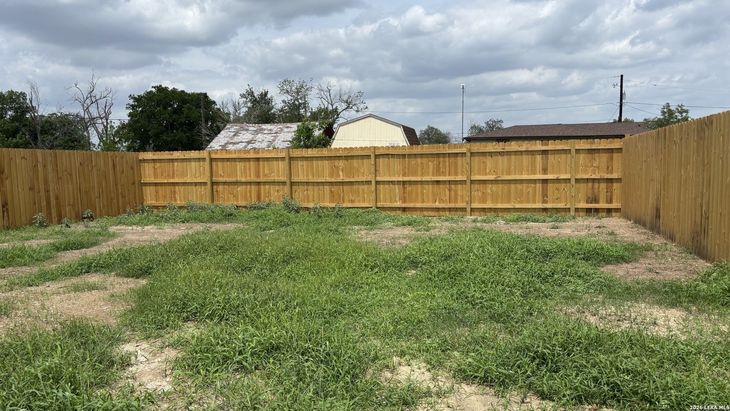 Brand new and move in ready, this three bedroom two bathroom home offers a functional layout with modern finishes throughout. Built on a slab foundation, the home features an open living, dining, and kitchen area that creates a comfortable and connected space for daily living. The kitchen stands out with crisp white cabinets, butcher block countertops, a new range, and a door leading to the exterior. A dedicated laundry space is designed for a stackable washer and dryer for added convenience. Durable wood look flooring runs throughout the home for easy maintenance. The primary bedroom includes a private bath with a tub/shower combo, butcher block counter, and vessel sink. Two additional bedrooms share a hall bathroom with a tile shower. Outside, you'll find a privacy fenced backyard, perfect for relaxing or entertaining.
