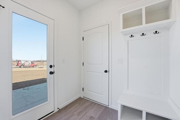 Welcome home to this beautifully designed two-story townhome offering 3 bedrooms and 2.5 baths with thoughtful upgrades throughout. The main level features durable LVP flooring and an open-concept layout perfect for everyday living and entertaining. The kitchen shines with quartz countertops, tile backsplash, stylish fixtures, and stainless steel appliances. A convenient half bath for guests and a charming drop zone off the garage entry provide added functionality. Upstairs, you'll find high-traffic carpet on the stairs and a well-planned second level complete with bedroom-level laundry and a linen closet. The spacious primary suite includes a walk-in closet and a private en-suite bath featuring tile flooring, tile shower walls, and sleek glass doors. Additional highlights include a garage door opener and low-maintenance living. Enjoy fantastic community amenities including a pool, playground, firepit, pickleball and basketball courts, disc golf, and a stocked pond for fishing. HOA covers trash and recycling, making for easy, carefree living! Photos/Video are from another townhome with the same floor plan, actual finishes may be different. The estimated completion date is August 2026