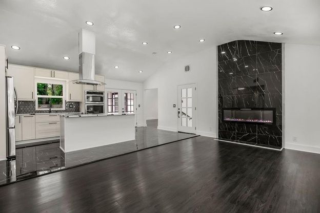 Step into a beautifully rebuilt home where comfort meets thoughtful design and every detail invites you to stay a little longer. Originally a 70-year-old home, it has been completely rebuilt from the ground up, offering the perfect blend of character and modern updates. From the moment you enter, the stone-wrapped fireplace in the family room sets a warm, inviting tone, complemented by natural light streaming through French doors that open to the deck-perfect for relaxing or entertaining. The kitchen serves as the heart of the home, blending style and function with marble finishes, stainless steel appliances, and ample space for both everyday living and hosting. The primary suite offers a true retreat, featuring its own private fireplace and a spa-like bathroom with a glass-enclosed shower, jetted tub, and double sinks. Hardwood floors, recessed lighting, ceiling fan, and French doors to the deck complete this peaceful space. Throughout the home, you'll find art deco lighting, recessed lights, and stylish finishes that create a cohesive and elevated feel. The hall bath stands out with black-and-white marble, art deco accents, and a glass-enclosed tub/shower combo with sliding barn doors. With four spacious bedrooms and three full baths, there's room for everyone. Major updates include a new roof, windows, plumbing, electrical, and a full sprinkler system for added peace of mind. Step outside to a thoughtfully designed backyard featuring brick-framed landscaping, decorative post lighting, and a 25x20 deck overlooking a brick patio with fire pit-ideal for entertaining or quiet evenings. The two-car garage includes new epoxy flooring, and the home is equipped with USB outlets, 200-amp service, and dual 4-ton HVAC systems for year-round comfort. As an added bonus, with a full-price offer, the refrigerator, washer, and dryer will stay. Don't miss your chance to see this one-schedule your private showing today!