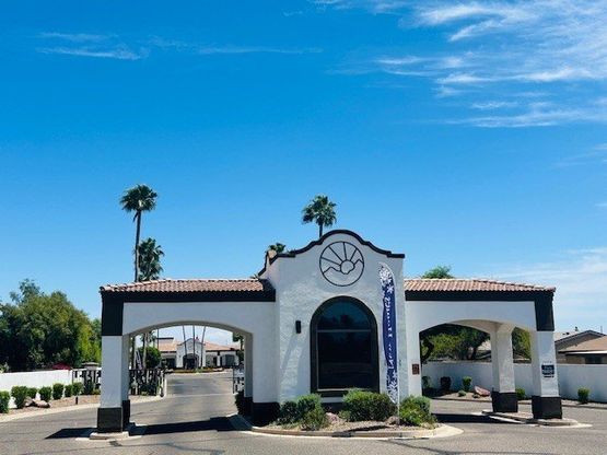 This beautiful home nestled on a corner directly across from the Community Center located in the Coppersun community in El Mirage, AZ offers 3 spacious bedrooms and 2 full bathrooms. Built in 2023 by Cavco, this home features an open floor plan 10Ft ceiling, 8 ft doors, crown molding, a cozy living room, separate dining room for entertaining, a master bedroom with an en-suite bathroom with a large tub and shower, a modern kitchen with all appliances included, and a convenient laundry room. The exterior boasts a carport for parking and a patio for outdoor enjoyment. Coppersun is a vibrant community in El Mirage, AZ offering residents a variety of amenities and activities. Residents can enjoy a clubhouse for social gatherings, a swimming pool for hot days, and a fitness center for staying active. The community also features walking paths, picnic areas, and organized events to bring neighbors together. Located near shopping, dining, and entertainment options, Coppersun provides a comfortable and convenient place to call home in the heart of Arizona.