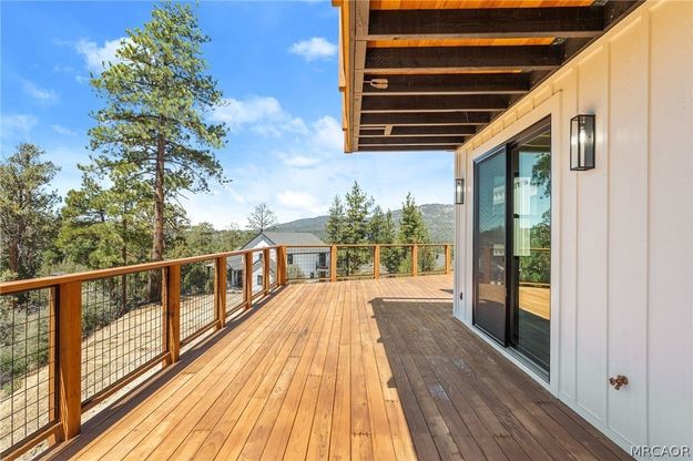Rare opportunity to own a brand-new, never-lived-in custom luxury home where no detail was left undone. Perched in one of Big Bear's most coveted gated communities with unobstructed, panoramic views of Bear Mountain and Snow Summit, this architectural masterpiece redefines mountain living. Spanning approximately 3,129 sq ft across 4 bedrooms, 4 bathrooms, and a loft, this home was designed and built with an uncompromising eye for quality. Soaring 20-foot ceilings and walls of high-end black-trim Andersen windows flood the space with natural light while framing breathtaking ski resort and forest views from nearly every room. The floating staircase with glass railings and integrated lighting is a statement piece the moment you walk in. The chef's kitchen is a true showstopper - floor-to-ceiling 9-foot custom cabinetry, a stunning quartz waterfall island, full KitchenAid appliance suite, under-cabinet lighting, and premium finishes that rival any luxury home at any price point. Two expansive decks invite you to take in the mountain air and sweeping views year-round. Two luxurious primary suites - one on the main level and one upstairs - offer flexibility for multi-generational living, entertaining guests, or maximizing vacation rental income. Every bathroom features custom floating vanities with integrated under-cabinet lighting, delivering a spa-like experience throughout. Additional highlights include paid solar (9 panels) for energy efficiency rarely found at this elevation, an open-concept layout perfect for entertaining, and a gated community setting that offers both prestige and privacy. Just minutes from world-class skiing, Big Bear Lake, and Big Bear Village - this is the one buyers have been waiting for. Luxury is not an upgrade here. It is the standard.