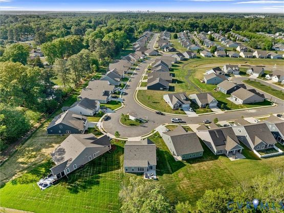 Built in 2025 and meticulously maintained by its original owner, this nearly new one-level home offers 2 bedrooms and 2.5 baths with true zero-entry access at all doors for easy living. Filled with natural light, the home features abundant windows & recessed lighting with a ceiling fan in the primary bedroom. The open-concept layout is perfect for entertaining and everyday comfort. The kitchen shines with a single-bowl farmhouse sink, marble/granite-style countertops, gas cooking, and a spacious lighted walk-in corner pantry, all overlooking the dining and family rooms. A sliding glass door opens to a rear patio and generously sized yard, maintained by the HOA. The primary suite includes a large double-door closet, dual vanities, standalone shower, and linen closet. A second private suite on the opposite side offers its own full bath-ideal for guests. Additional highlights include a 2-car garage and irrigation system. Located in Settlers Ridge, a 55+ community in Henrico's Varina District, residents enjoy low-maintenance living with amenities such as an indoor heated pool, fitness center, and clubhouse with year-round events. Convenient to I-295, I-895, Route 60 & 5, just 6.6 miles from Richmond International Airport, and close to shopping, dining, the Varina-Henrico Library, Downtown Richmond, and Williamsburg. Come tour this gem and make Settlers Ridge your new home!