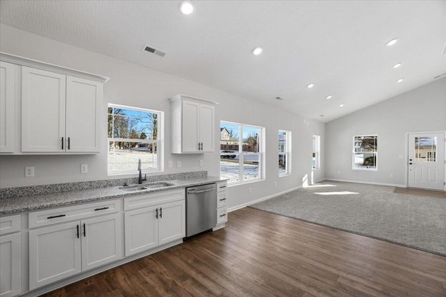 Stunning brand-new construction offering 2 bedrooms and 2 full bathrooms, designed with comfort and style in mind. The main living space features soaring vaulted ceilings, creating an open and airy atmosphere perfect for both relaxing and entertaining. The spacious kitchen is beautifully appointed with custom cabinetry accented by crown molding, granite countertops, and ample workspace. This thoughtfully designed home includes convenient entryway storage, a dedicated laundry room, and a utility closet for added functionality. The large primary suite boasts vaulted ceilings, a private en-suite bathroom, and a walk-in closet, providing a true retreat. Enjoy outdoor living with both front and back patios, a sizable backyard, and a concrete parking area for ease and accessibility. An added bonus is the 5-year property tax abatement, offering valuable savings. This move-in-ready new build combines modern finishes with practical design--an excellent opportunity you won't want to miss! Disclosure- listing agent owned
