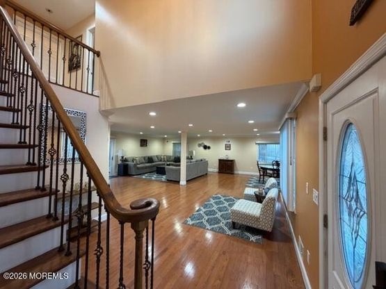 This renovated home with a 2018 addition features an open layout with four bedrooms, including a main-level suite with a full bath perfect for guests or an office. Hardwood floors run throughout, leading to a modern kitchen and three renovated bathrooms. A finished walkout basement adds living space with outdoor access. The property includes an attached garage, a large driveway for 10+ cars, and a fenced yard. Upgrades include a newer roof, HVAC, and tankless water heater. Located near highways, Rutgers, RWJ, St. Peter's, and top East Brunswick schools, this home combines style and convenience. It is a perfect blend of modern living and accessibility, offering a turn-key experience for buyers seeking comfort in a prime location. Move-in ready and waiting for you today! Truly a gem. See it!