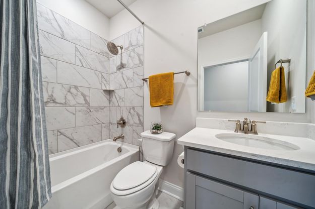 QUICK MOVE-IN! Welcome to the Hampshire, this stunning home offers 4 spacious bedrooms, 3 luxurious bathrooms, and 3,233 sq f of beautifully designed living space. This open-concept layout is perfect for both everyday living and entertaining. The heart of the home is the gourmet kitchen, featuring modern shaker-style cabinets, elegant quartz countertops, and stainless steel appliances. A large central island provides ample workspace, while the adjacent butler's pantry offers additional storage and prep space for the ultimate culinary experience. Upon entering, you'll find a versatile flex room that can easily serve as a dining room or home office, allowing for flexible living arrangements. The inviting living room is complete with an electric fireplace, creating a cozy ambiance perfect for relaxing or hosting guests. The main floor also includes a bedroom and a full bath, ideal for guests or family members who prefer easy access. Upstairs, you'll discover three generously-sized bedrooms, including the luxurious primary suite. The primary bedroom features its own private sitting room.