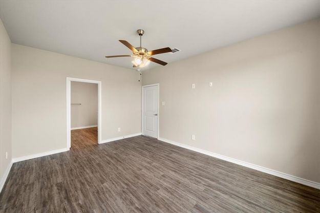 New construction with a spacious open layout and vaulted ceilings, this 4-bedroom home offers a clean, modern feel with functional design throughout. The main living area is open and inviting, anchored by a large living room that flows directly into the kitchen and dining space—ideal for everyday living and entertaining. The kitchen features a central island, quartz countertops, custom cabinetry, and stainless steel appliances. The primary suite offers a large walk-in shower and an oversized closet with direct access to the laundry room for added convenience. Durable vinyl wood flooring runs throughout the home, providing a cohesive, low-maintenance finish. Outside, the fenced backyard adds privacy and usability, with fresh sod already in place. Located in a growing area with easy access to nearby amenities, this home is a strong option for buyers looking for newer construction without the wait.
