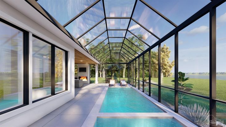 Stunning new-construction insulated concrete form (ICF) waterfront residence offering breathtaking views of the bay and Perdido Key. This custom single-level home combines luxury, comfort, and unmatched structural integrity, crafted for those who want the very best in coastal living. Step inside to find elevated ceilings, 8 foot doors, and an airy, open layout designed to maximize natural light and capture panoramic water views through expansive picture windows spanning the back of the home. The gourmet kitchen features a spacious layout centered around a premium 48" range and oversized refrigerator, perfect for entertaining. This thoughtfully designed custom floor plan includes three private bedrooms, each with its own ensuite bath, plus a versatile study/bonus room ideal for a home office, media space, or guest overflow. The primary suite is a true waterfront retreat and boasts a split his-and-hers bath and closet layout for convenience and privacy. Specifically designed for outdoor living with a large, covered porch with cozy fireplace overlooking the water, enjoy resort-style amenities in your own backyard with a heated pool and spillover hot tub all enclosed by lanai. Boating enthusiasts will appreciate the private deep water boat slip, offering convenient access to the Intracoastal, Bay, and Gulf. Additional features include a spacious three-car garage, ICF construction for superior energy efficiency and storm resilience, and meticulous attention to detail throughout. This is a rare chance to own a spectacular waterfront masterpiece where luxury meets durability. Act now to secure this extraordinary home during the construction phase. Buyers who move quickly will have the opportunity to select certain finishes and personalize the space to their tastes. * All photos are renderings and are for illustrative purposes only. Final finishes, materials, and details are subject to change at the builder's discretion. *