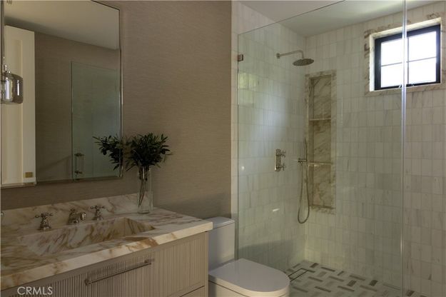 Experience elevated living in the heart of Studio City with this gated new construction home, featuring a spacious open-concept floor plan accentuated by lofty ceilings and expansive walls of glass that flood the interior with natural light. The designer chef’s kitchen is outfitted with top-of-the-line appliances, including a showstopping La Cornue range as its centerpiece, along with a massive waterfall island and walk-in pantry. Open to the kitchen, the living room and formal dining area are anchored by a gorgeous stone fireplace and framed by two oversized sliding glass doors that seamlessly extend your living space outside. Surrounded by lush privacy hedges, the backyard retreat delivers the ultimate outdoor living experience with a sparkling pool and spa, built-in BBQ and charming bar area. Completing the main level is an ensuite bedroom and chic powder bathroom. Upstairs, you’ll find a dedicated laundry room and two generously sized ensuite bedrooms, each featuring vaulted ceilings and a private balcony. The primary suite serves as a luxurious retreat with a custom walk-in closet and spa-inspired bathroom boasting a soaking tub, steam shower and dual sink vanity. Additional highlights include a two-car garage and smart home system that controls lighting, speakers, climate and a security system with cameras. This property is ideally located within the top-rated Carpenter School District and just moments away from Ventura Boulevard’s premier shops and restaurants, the Studio City Farmers Market and so much more.