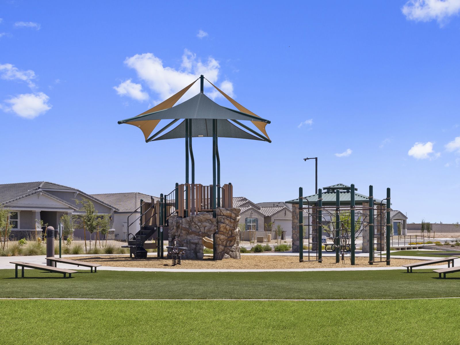 Step into a fresh start with new homes designed for modern living at El Cidro in Goodyear, AZ. Our homes feature spacious great rooms and private primary suites, designed for comfort and privacy. Move-in ready with a washer, dryer, fridge, and whole-home blinds, and closing in 60 days or less – guaranteed. (We'll reimburse up to $5,000 for delays we cause.) This community features amenities like picnic tables, a playground, and sand volleyball.