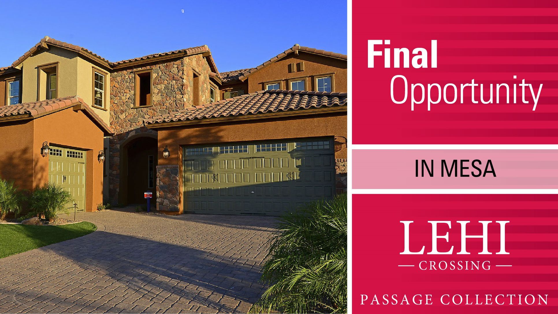 Final opportunity! One home available! Please call 480-654-3450 Taylor Morrison at Lehi Crossing is an all new gated community situated along the Northern border of the prestigious orange grove corridor of East Mesa, Arizona. Lehi Crossing offers residents excellent schools and convenient access to shopping, entertainment and virtually all major employment hubs in the Mesa, Tempe & Scottsdale area. The city of Mesa boasts an assortment of lifestyle and leisure pursuits. Surrounded by the desert - a playground for sought after outdoor recreation, upscale shopping, delectable dining options and a renowned school district that has an on-going reputation for producing some of the Phoenix Valley's best and brightest students. As the third largest city in Arizona, Mesa is the modern-day urban desert retreat where landscapes are beautiful and tradition and heritage still shine. Lehi Crossing features 1 and 2 story homes from our all new Passage Collection. Homes range in size from 2,478 sf - 3,958 sf and provide a wide range of structural options including attached Casitas as well as 4 & 5 car garages! Taylor Morrison is widely recognized as one of the top homebuilders in North America. The company is committed to the highest quality construction standards, excellence in design, and establishing a partnership between builder and homebuyer that results in the complete satisfaction of each and every customer. Click HERE to learn more about the city of Mesa and surrounding area.