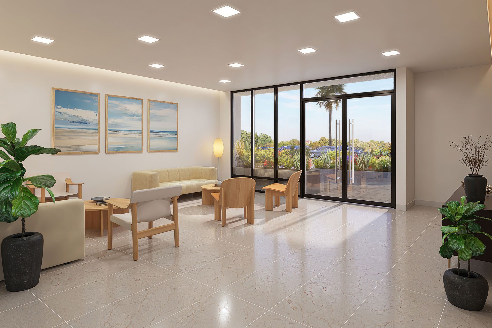 - Lobby & Gathering Space: Encore’s welcoming lobby features soft tones, natural textures, and inviting seating areas. More than an entryway, it’s a refined space designed to warmly welcome residents home and encourage relaxed connections.