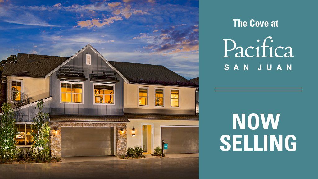 Luxury Attached Homes in San Juan Capistrano The Cove is the newest addition to the Pacifica San Juan master plan community in San Juan Capistrano, California. With American Farmhouse and Craftsman architectural styling, The Cove features 70 attached homes with three inspired open floor plans ranging from approximately 1,836 to 2,088 square feet. Learn More about Pacifica San JuanCOVE MODELS JUST RELEASED FOR SALE! Tour Residence One Tour Residence Two Tour Residence Three View Club PacificaDiscover the Amenities at Pacifica San Juan The luxury homes at Pacifica San Juan represent Southern California living at its best with desirable locations that are just a short drive from the ocean. Pacifica San Juan provides a unique opportunity to own a new home in San Juan Capistrano. It features a rare blend of quiet serenity, sense of community and luxurious coastal living. The entire master plan community includes gardens, lookouts, open space and both multi-use and equestrian trails. Click here to view the Pacifica San Juan site plan.Art and Culture The Cove at Pacifica San Juan residents will experience the charm of San Juan Capistrano's art, culture and history. The town is built around and named after the historic Mission San Juan Capistrano. There are several art galleries within city limits.Outdoor Activities Capitalize on San Juan Capistrano's beautiful weather by enjoying the outdoors. If golf sounds good, play a round and experience breathtaking views at San Juan Hills Golf Club or ask about a membership at Marbella Country Club in the lush rolling hills. If you take an interest in horses, San Juan Capistrano will cater to the equestrian in you.Plenty of Places to Eat and Shop San Juan Capistrano is home to several top-rated restaurants including Cedar Creek Inn, L'Hirondelle Restaurant, Ramos House Cafe and more.