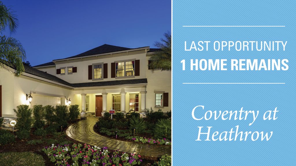 Welcome to Coventry at Heathrow, a premier neighborhood of new homes inside the guarded gates of the esteemed Heathrow Golf & Country Club community. Residents of the new homes at Heathrow will enjoy one of the area’s most sought-after locations with convenient access to major employment centers, A-rated public schools, shopping, services and recreation, along with outstanding community amenities. If you are looking for new homes in Seminole County that provide an exceptional value and the best of everything in Central Florida's most desirable area. Driving Directions Request InformationTaylor Morrison Homes in Coventry at Heathrow Coventry at Heathrow offers well-appointed new homes with an extensive array of standard features and highly attractive advantages today’s discerning homeowners want. These include: A prestigious location in the Heathrow Golf & Country Club master-planned community60’ and 70’ home sitesExpansive family roomsLanais for enjoying outdoor livingGourmet kitchen with top-quality appliances and appointmentsStunning architectural accentsSpacious owners’ suites with luxurious master bathsTech-ready wiringEnergy-efficient materials and constructionCommunity Features Coventry at Heathrow is an upscale community of new homes in Seminole County. It offers a safe, gated environment in an area known for its affluence, great schools and easy access to major transportation corridors and employment centers. Coventry at Heathrow is less than two miles from I-4 and Toll Road 417. It is home to many high tech companies and such international firms as AT&T, Chase and Mitsubishi. Downtown Orlando is just 20 minutes away and popular attractions including beaches and theme parks are all within a 45-minute drive. Community amenities include lakes, a fishing pier, walking trails, a park and ball fields.